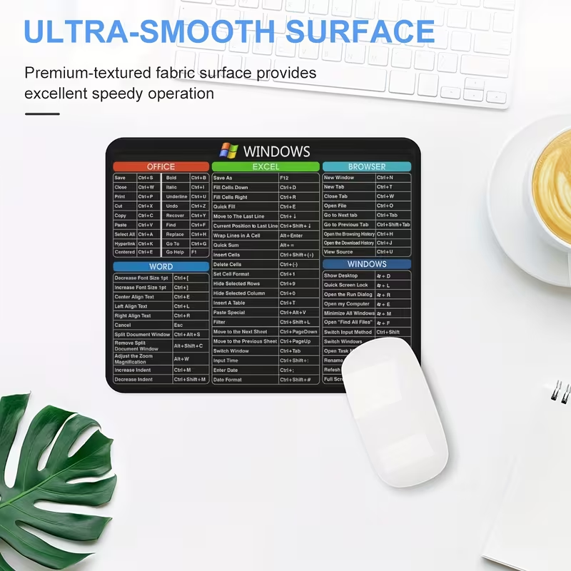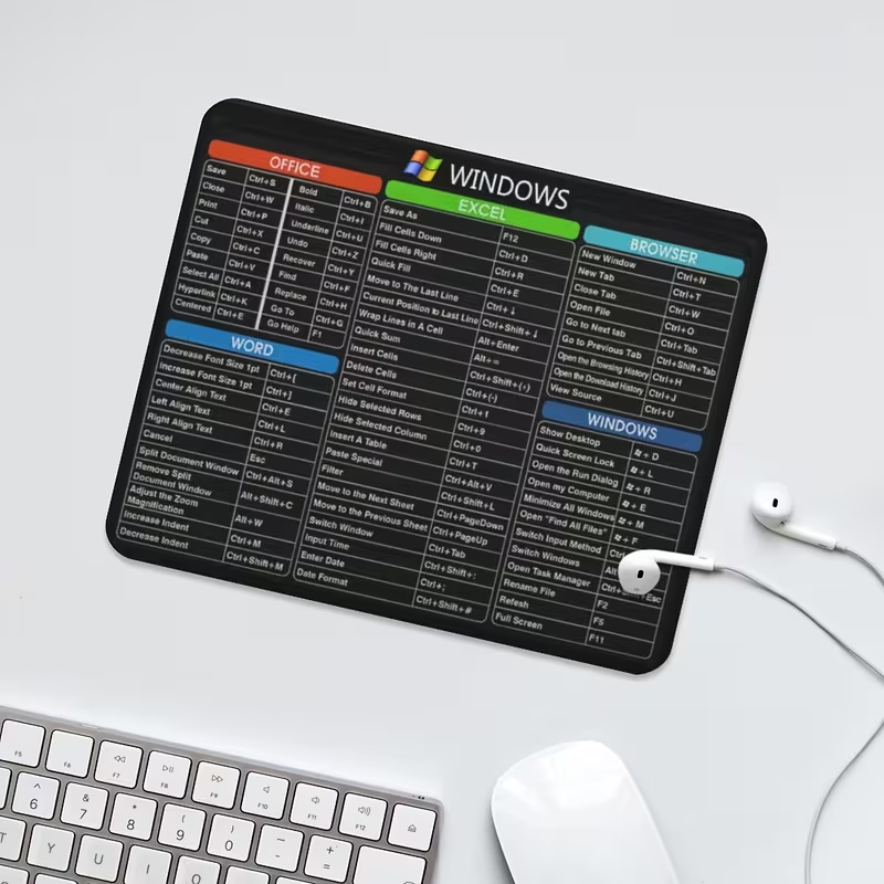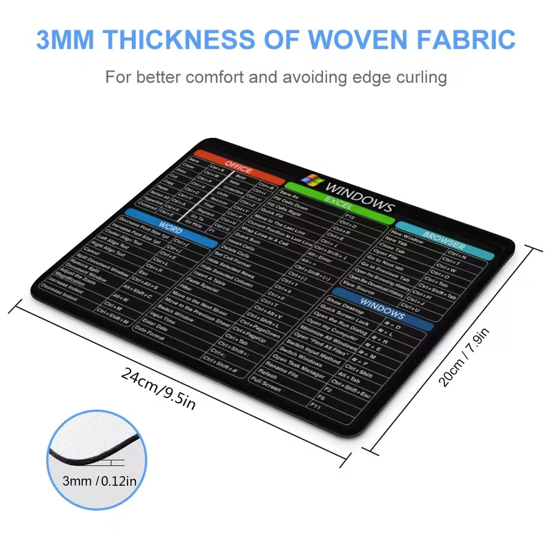 1pc Tapete de Rato de Borracha Antiderrapante Ergonômico com Atalhos de Janela – Tapete de Rato de Jogos de Escritório Retangular, Durável e Confortável, Ideal para Computador e Laptop, 24.13X20.07 cm
