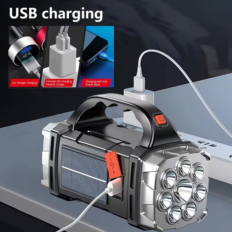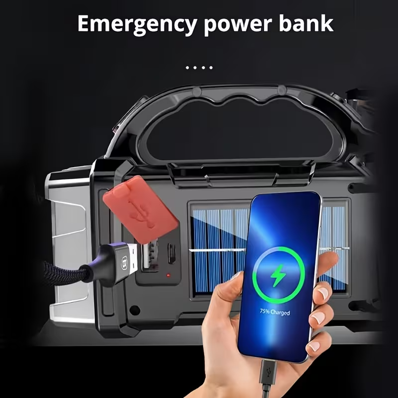 Lanterna LED Solar e USB Superbrilhante – Uma Lanterna Portátil Robusta para Uso Exterior, Também Serve Como Power Bank de Emergência.